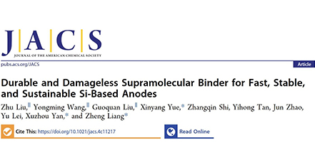 JACS Publication | Liang Zheng/Yan Xuzhou: Super-durable and fast-release supramolecular binder for high-performance, sustainable silicon-based anodes
