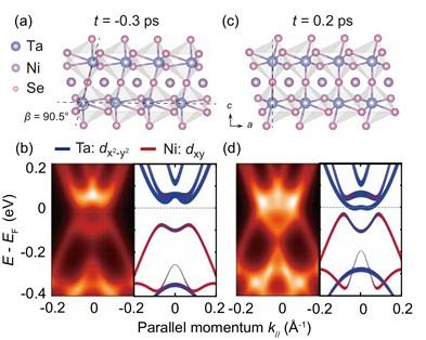 Ta2NiSe5长期以来被认为是激子绝缘体的有力候选材料,但其低温能隙的起源究竟是由激子凝聚主导,还是由结构相变驱动,一直存在激烈争论。此前,时间分辨角分辨光电子能谱(tr-ARPES)和超快光谱等实验揭示了该材料的能带和载流子动力学;但由于缺乏对原子运动的直接观测,难以确定该材料光致能隙变化的原因。