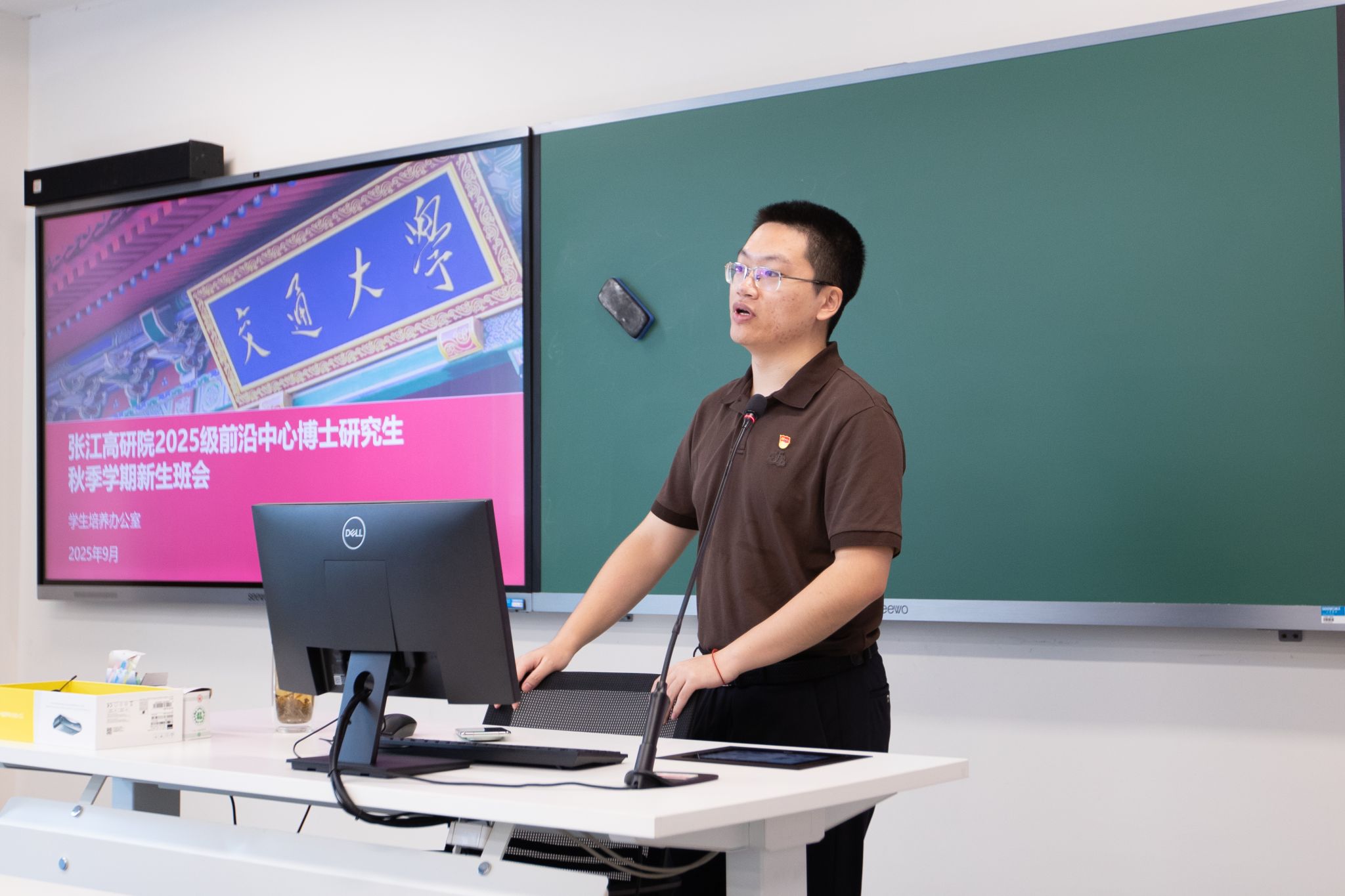 9月24日上午,张江高等研究院在吕志和科学园6号楼205智慧教室召开前沿中心2025级博士生秋季学期新生班会并开展 UTJS体验式培训,活动由思政教师赵鼎华主持。